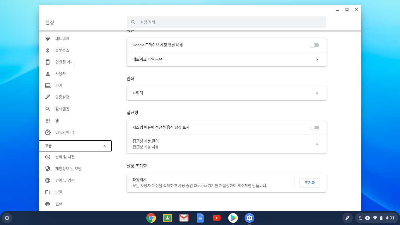 크롬북에 CEU라이선스를 등록하는 과정을 정리해보았습니다. 먼저 크롬북을 파워워시로 초기화해야 합니다.