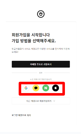 2. 소셜계정으로 로그인을 해서 가입하는 것이 편합니다.