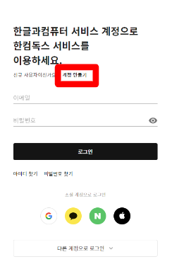 1. 계정만들기를 하고 소셜계정으로 회원가입을 합니다. 계정만들기를 클릭합니다.