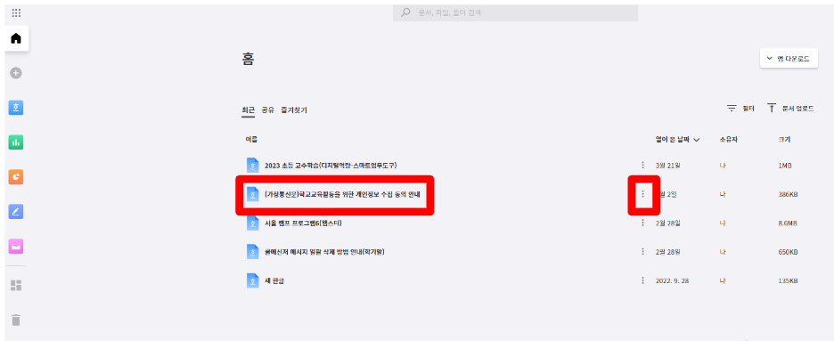5. 해당문서의 점 세 개 옵션을 선택합니다.