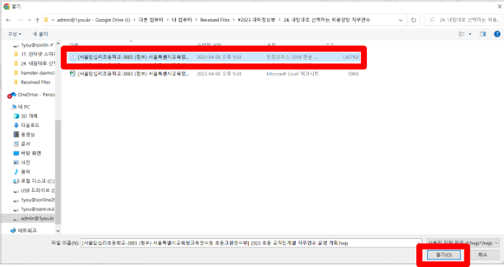4. 공동편집해야 하는 문서를 선택하고 열기 버튼을 클릭합니다.