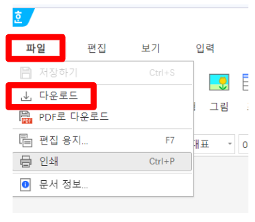 11. 편집이 끝나서 파일-다운로드를 클릭하여 파일을 받아도 컴퓨터에 깔린 한컴에서 깨지지 않고 열리는 것을 확인할 수 있습니다.