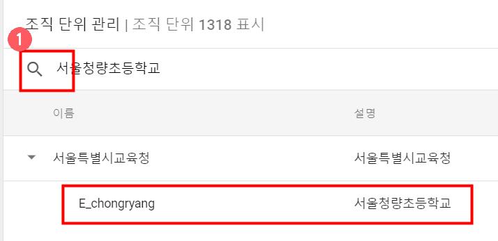4. 돋보기 모양을 클릭해서 검색하면 본인의 조직을 찾을 수 있습니다.