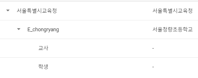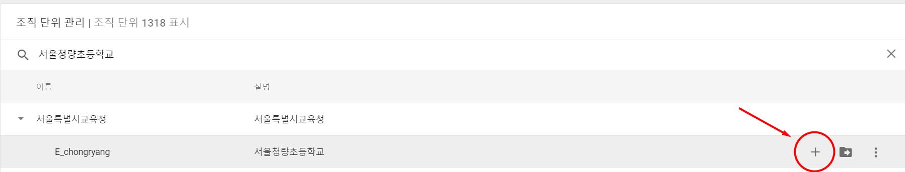 5. 마우스 커서를 해당 학교 위에 놓고 오른쪽으로 가져가면 + 버튼을 눌러 새조직 만들기가 됩니다.