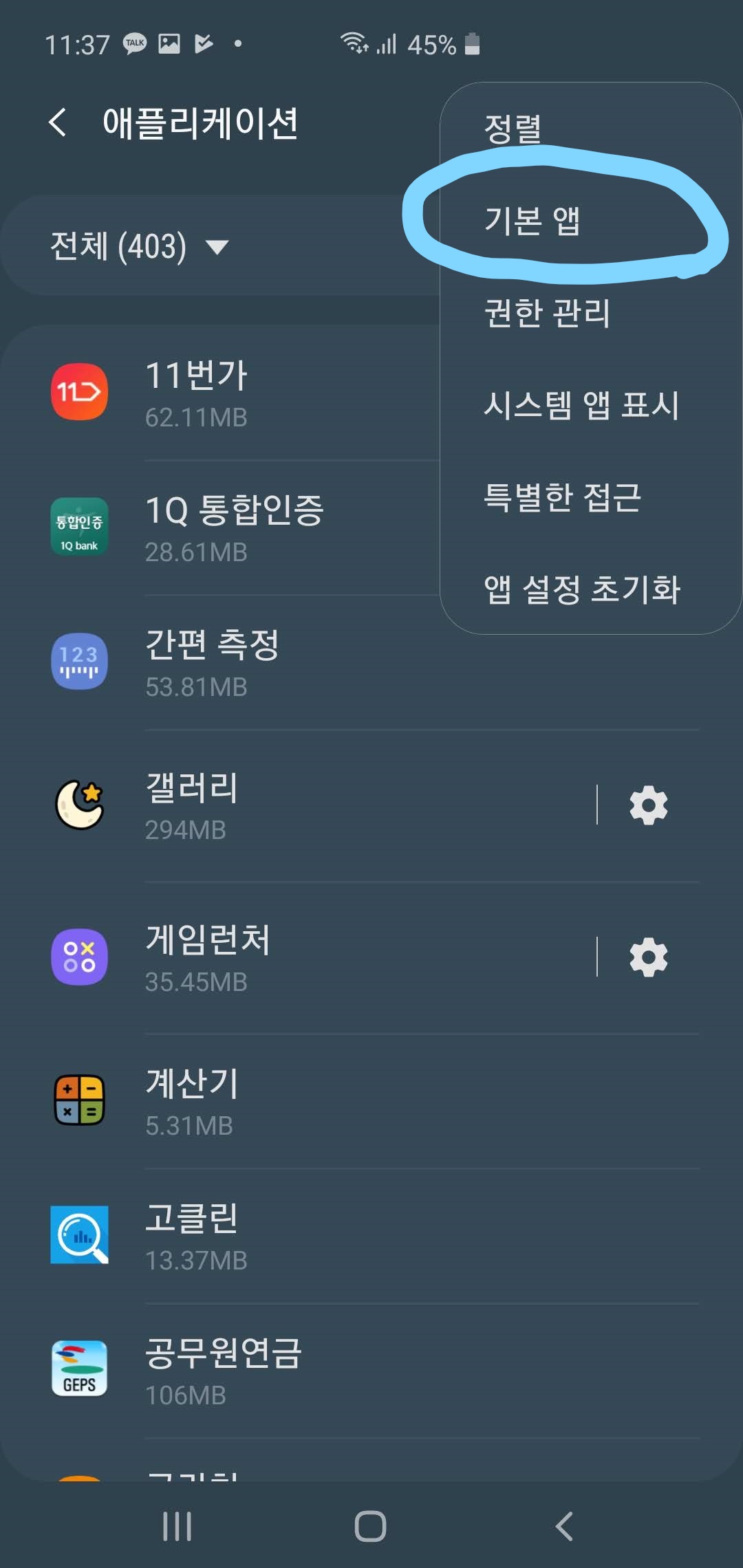 4. 나오는 기본앱 메뉴중 브라우저 앱을 선택합니다.