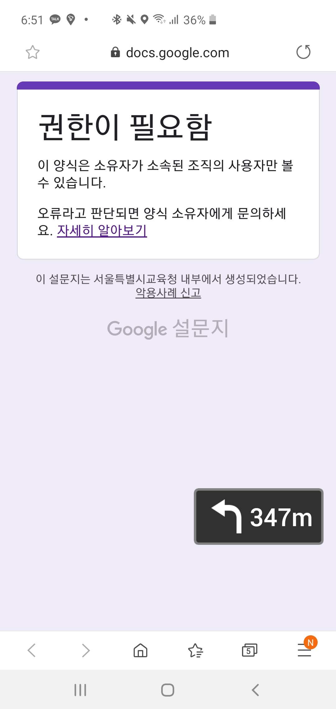 7. 특히 다음과 같이 권한이 필요함 메세지를 뜨는 삼성브라우저를 만날 일이 줄어듭니다. 물론 크롬으로도 이런 화면이 떴을때는 브라우저에서 크롬 로그인을 한번 해주면 해결이 됩니다.