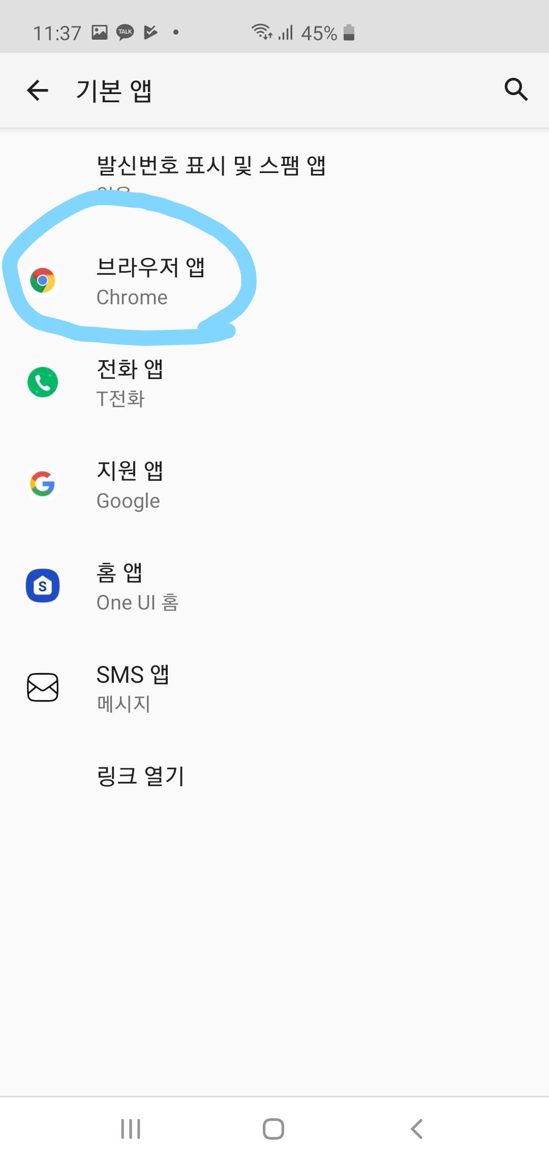 5. 기본 브라우저 앱을 크롬으로 선택합니다.
