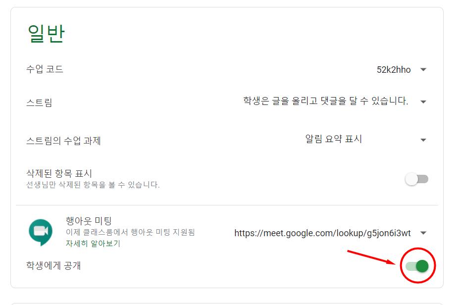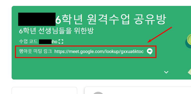 4. 클래스룸 홈화면에 구글미트 링크가 표시된 것을 볼 수 있습니다.