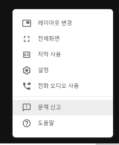 맨 오른쪽 하단 구석에 메뉴를 누르면 다음과 같은 화면이 나오는데 레이아웃을 설정하거나 설정-동영상에서 화질을 변경시킬 수도 있다. 화질은 기본 360p인데 720p로 상향시킬 수 있다. 고화질의 회의를 원하고 충분히 인터넷 환경이 받쳐준다면 고화질을 사용해도 될 것이다.