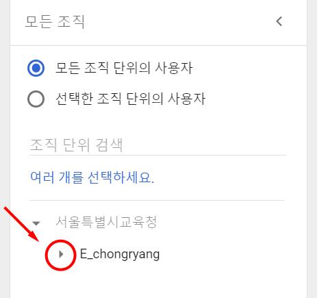 2. 왼쪽편 메뉴에서 본인이 속한 조직 앞에 있는 삼각형을 클릭합니다.